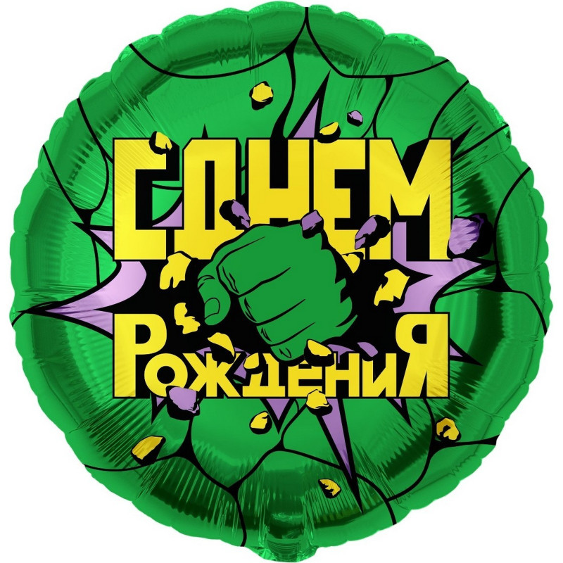9849844 (ДБ 13430) Зеленый фольгированный круг "С Днем рождения! Халк" D 45 см. (с гелием)