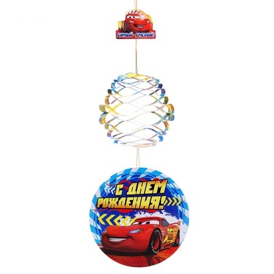1128666 Подвеска-фонарик "С Днем рождения! Тачки" Диаметр 21 см.