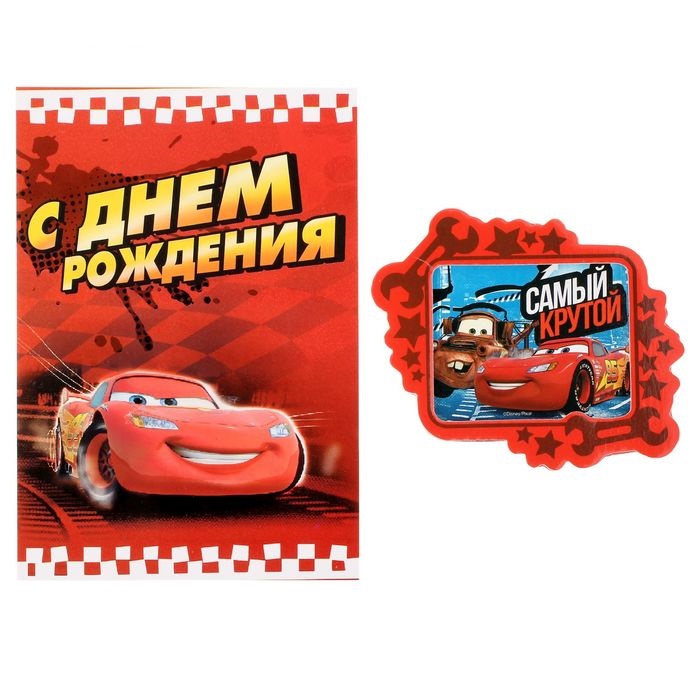 1277610 Открытка "С Днем рождения! Тачки" с полимерным магнитом