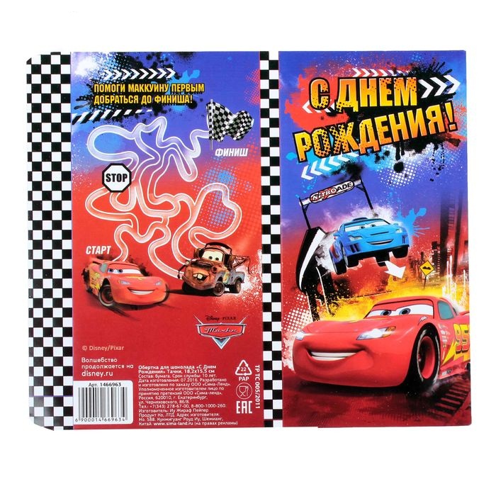 1466963 Мягкая обложка для шоколада "Тачки.С Днем рождения!"