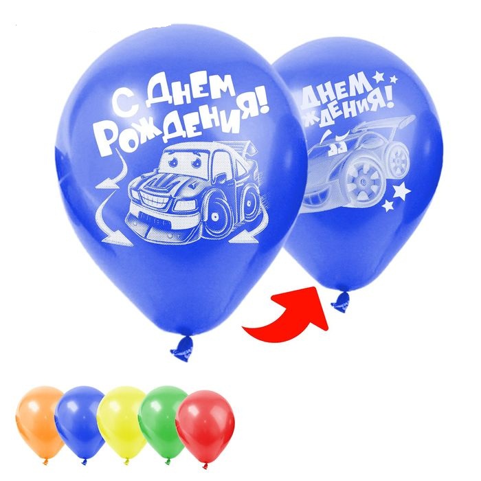 1801315 Шарик 2-сторонний "С Днем рождения! Тачка" Диаметр 30 см.Китай
