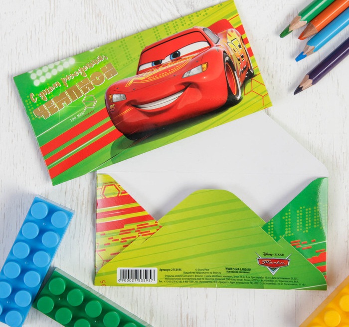 2753595 Конверт для денег "С Днем рождения,Чемпион! Тачки"