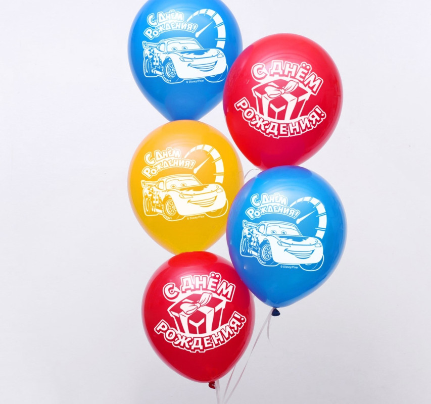4822783 Шарик 1-сторонний "С Днем рождения! Тачки" D 30 см. Цвета ассорти