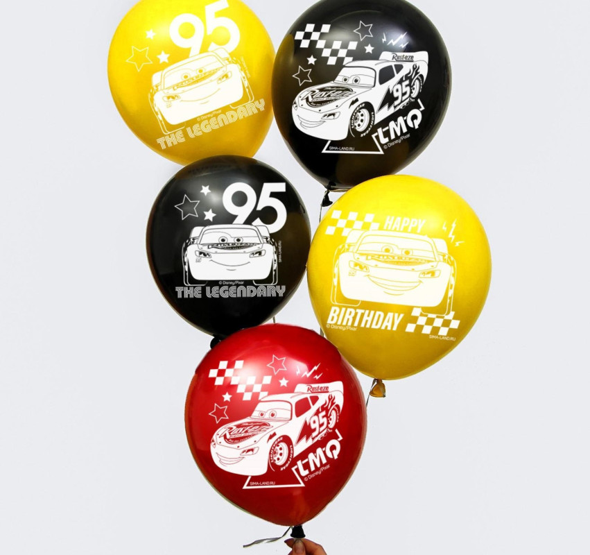 5358306 Шарик 1-сторонний "Happy Birthday! Тачки" D 30 см. Цвета ассорти