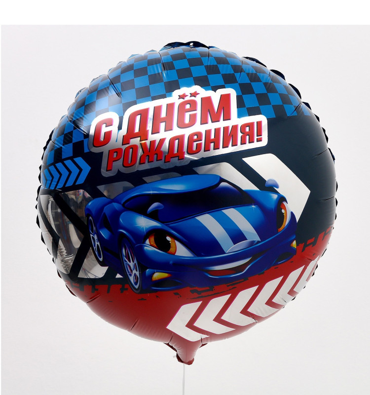 9474340 Фольгированный круг "С Днем рождения! Тачка" D 45 см. (с гелием)