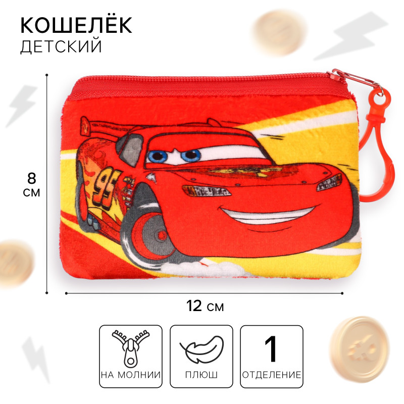 9720082 Кошелек красный прямоугольный "Тачки: Молния Маккуин" Размер 11.5 х 8 см. Текстиль