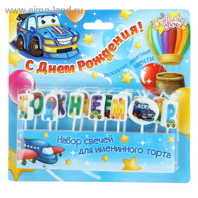 984064 Набор буквенных свечей "С Днем рождения.Машинки".В наборе 14 шт.