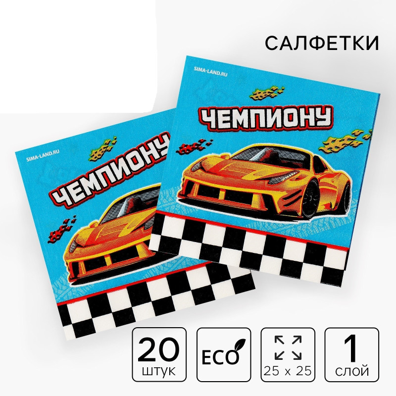 9899375 Набор голубых салфеток "Тачки" (20 шт.) Размер 25 х 25 см.