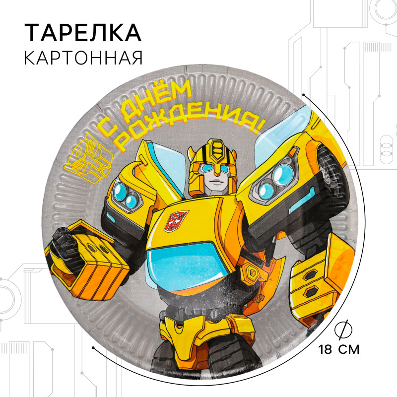 5142279 Набор тарелок "С Днем рождения! Трансформеры: Бамблби" (10 шт.) Диаметр 18 см.