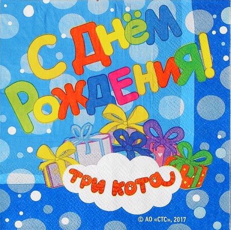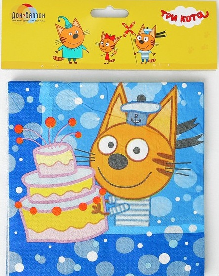 3468407 (ДБ 6014902) Салфетки синие "Три кота" (12 шт.) Размер 33*33 см.