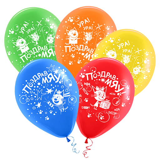 4615207 (ВВ 711206) Шарик 5-сторонний "ПоздравМяу! Три кота" D 30 см. Цвета ассорти (с гелием)