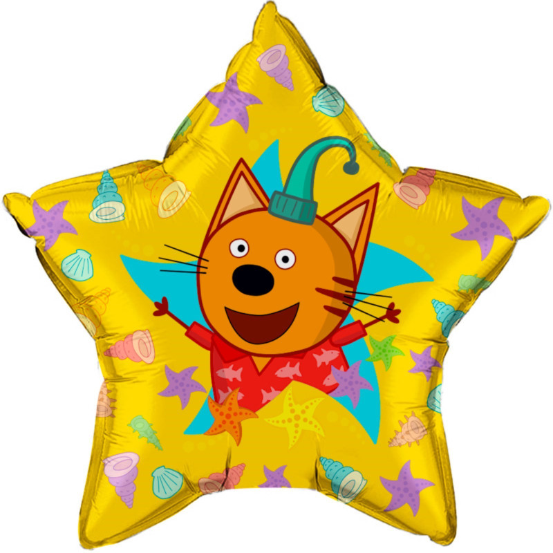7997773 (ДБ 404017) Желтая фольгированная звезда "Три кота: Компот" D 45 см.
