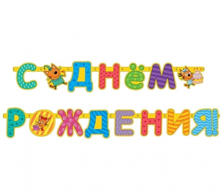 ДБ 6014896 Гирлянда - буквы "С Днем рождения! Три кота" Длина 260 см.