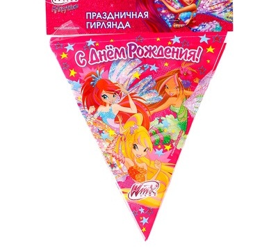 1039048 Гирлянда - вымпел розовая "С Днем рождения! Феи Винкс" Длина 3 м.
