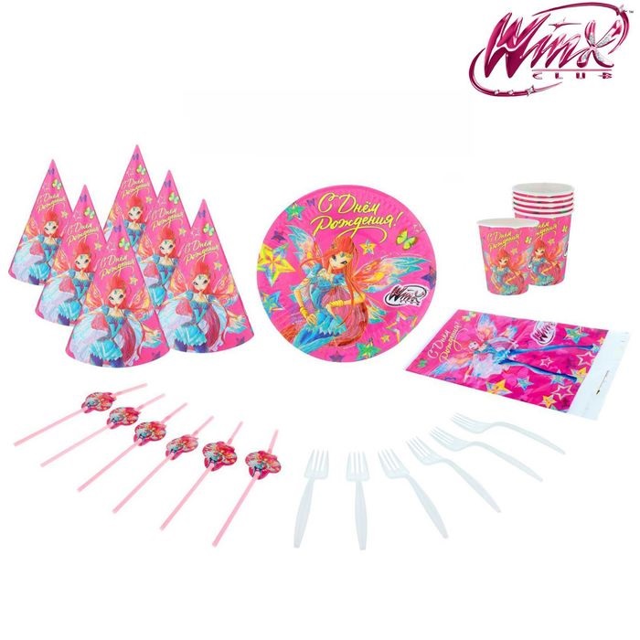 1351649 Набор бумажной посуды "С Днем рождения! Феи Винкс" на 6 персон