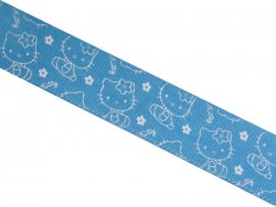 108000088 Репсовая лента Hello Kitti на голубом фоне. Ширина 2,5 см.