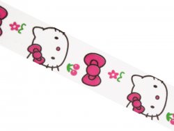 108000104 Репсовая лента Макси мордочка Hello Kitti с малиновым бантиком на белом фоне. Ширина 2,5 с