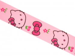 108000114 Репсовая лента Макси мордочка Hello Kitti с малиновым бантиком на розовом фоне. Ширина 2,5