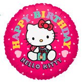 БР 0251002 Малиновый фольгированный круг "Happy Birthday! Hello Kitty" Диаметр 45 см.