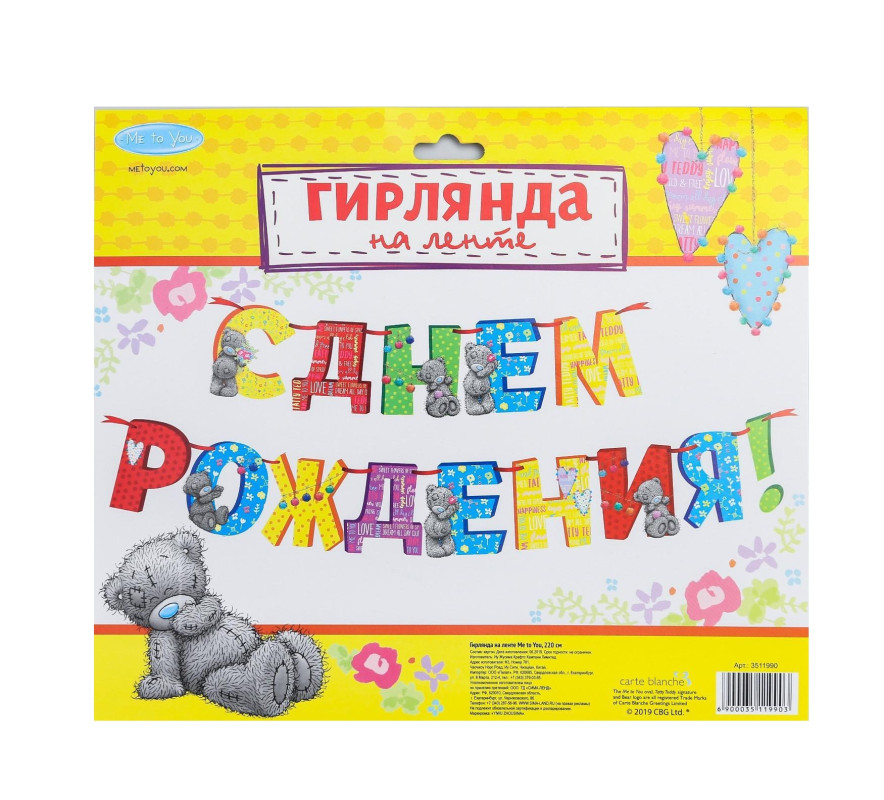 3511990 Гирлянда на люверсах "С Днем рождения! Me to You " Длина 220 см.