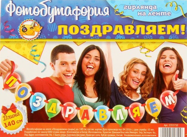 1355710 Гирлянда на ленте" Поздравляем" Длина 140 см.Высота букв 10,5 см.