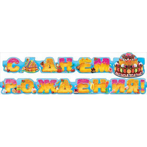 070.767 Гирлянда на люверсах "С Днем рождения! Торт и пироженое" Длина 290 см.