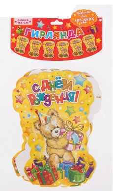 1142735 Гирлянда - вымпел "С Днем рождения! Мишка" Длина 165 см.