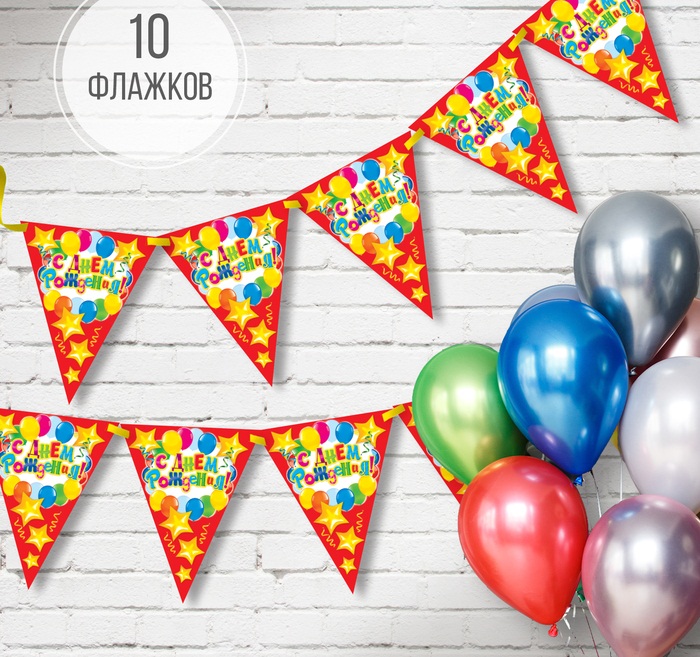 2853975 Гирлянда - вымпел красная "С Днем рождения!" на ленте.Длина 300 см.