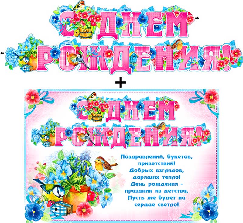 700-342-Т Гирлянда женская "С Днем рождения!" с плакатом