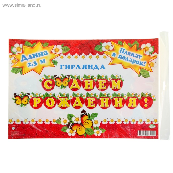 860043 Гирлянда "С Днем рождения.Бабочки". Длина 2,3 м.Плакат в подарок