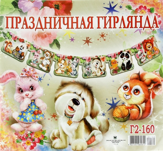 599184 (Г2-160) Гирлянда на люверсах "Зверюшки" Тиснение блестками