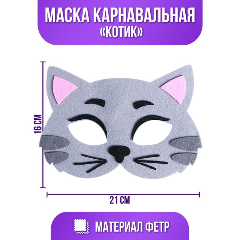 5048545 Маска из фетра "Котик" на резинке