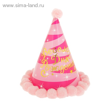 850180 Колпак с помпонами "Веселого дня рождения!" розовый