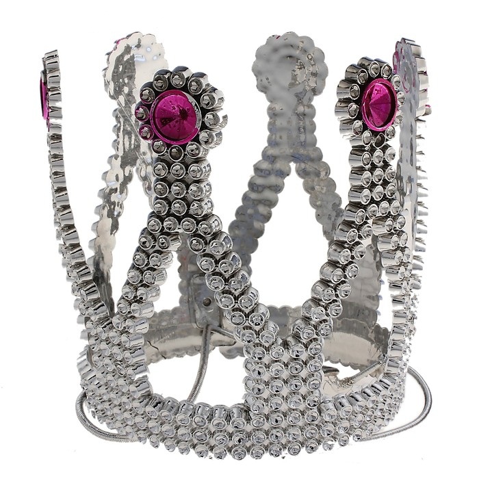 314015 Серебряная корона малая для принцессы на резинке.Пластмасса