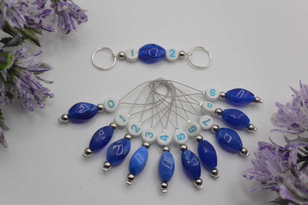 СР-6/СИ-2023 Синий набор маркеров для вязания (10 шт.) + счетчик рядов (1 шт.)