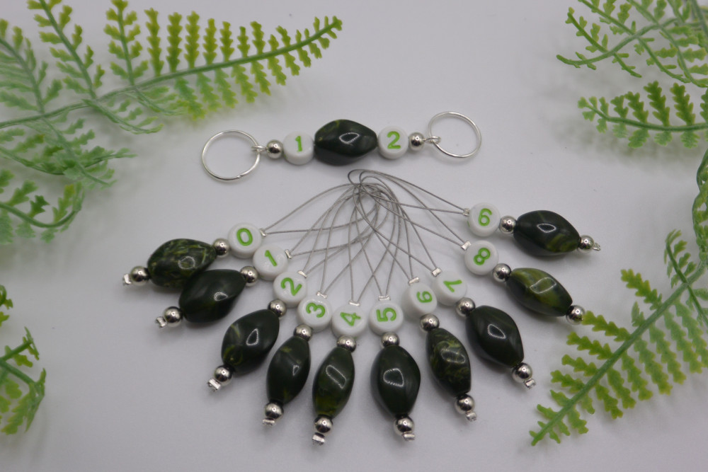 СР-9/ЗЕЛ-2023 Темно зеленый набор маркеров для вязания (10 шт.) + счетчик рядов (1 шт.)