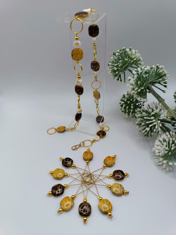 ЗЛ-2023/2-5Ж Желто-коричневый счетчик рядов на цепочке (1 шт.) + набор маркеров для вязания (10 шт.)
