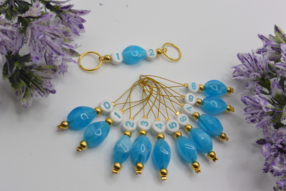 ЗЛ-2/Г-2023 Голубой набор маркеров для вязания (10 шт.) + счетчик рядов (1 шт.)