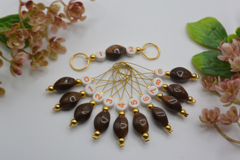 ЗЛ-4/КОР-2023 Коричневый набор маркеров для вязания (10 шт.) + счетчик рядов (1 шт.)