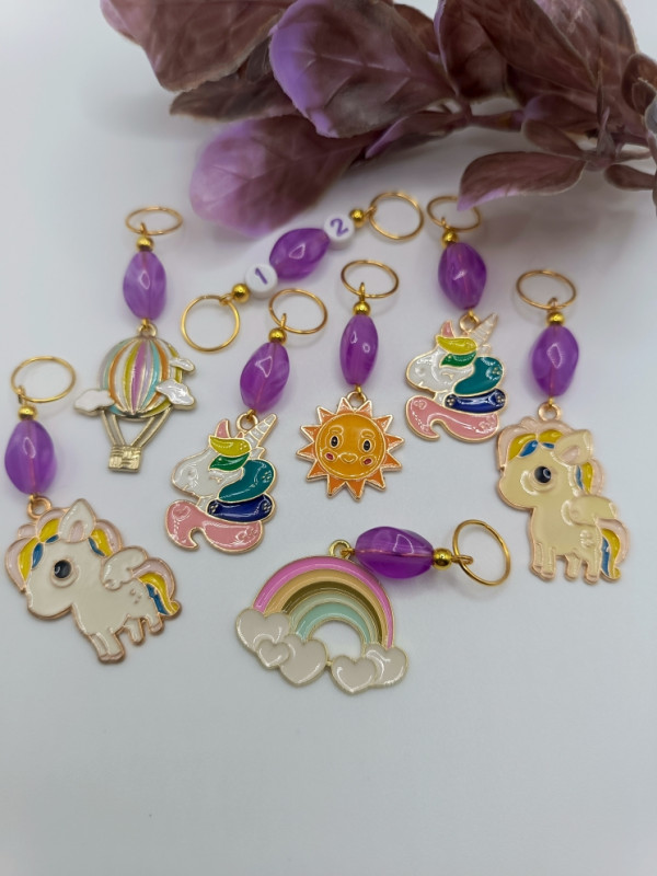 ЗЛ-8/7-2025 Мини набор маркеров для вязания "Единороги" (8 шт.) + счетчик рядов (1 шт.)