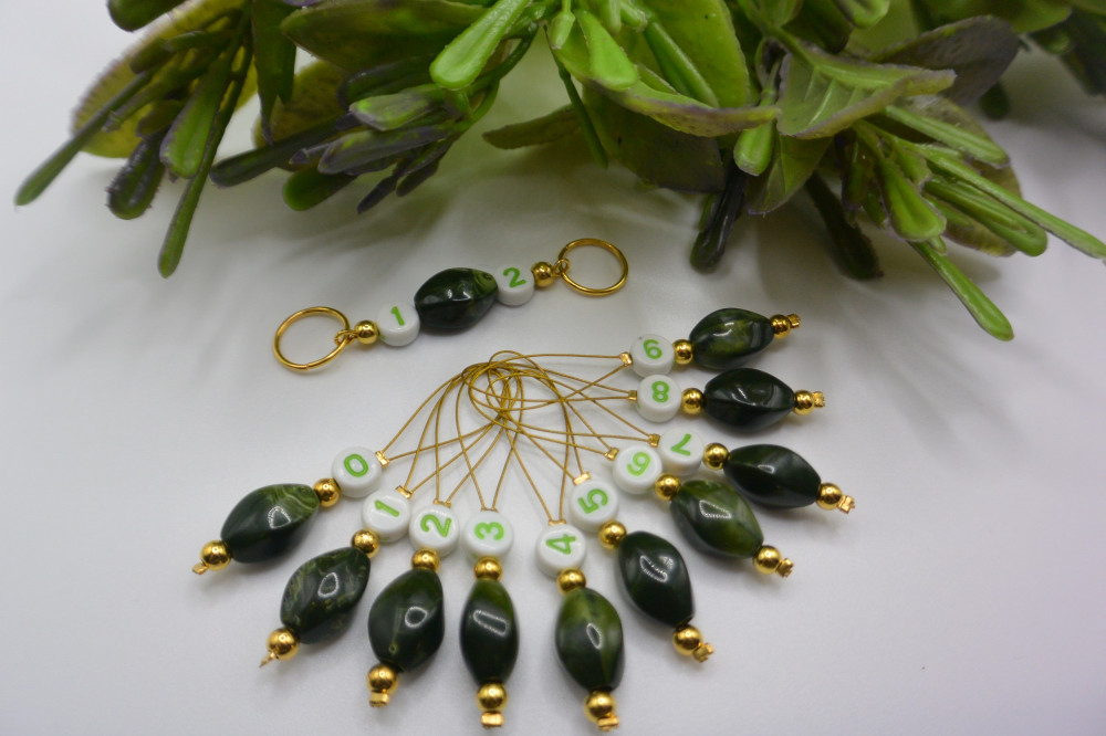 ЗЛ-9/ЗЕЛ-2023 Темно зеленый набор маркеров для вязания (10 шт.) + счетчик рядов (1 шт.)