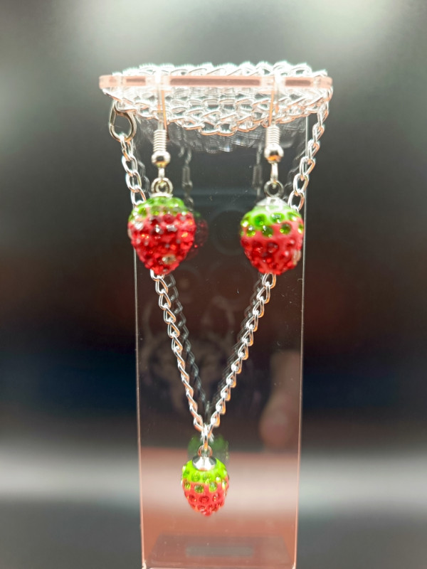 WW СР-24/10-СЦ Набор "Клубничка": Цепочка с кулоном + серьги. Цвет: серебро