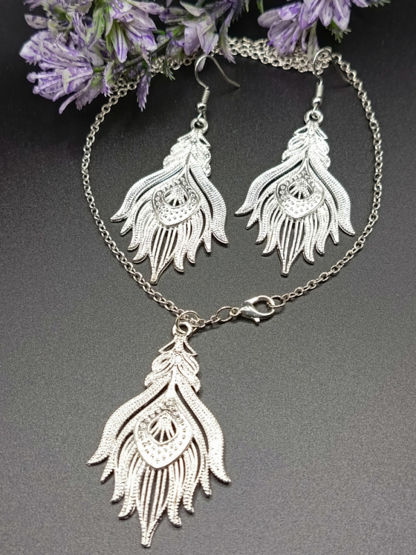 WW СР-25/18-СЦ Набор "Серебристый листья": Цепочка с кулоном + серьги. Цвет: золото