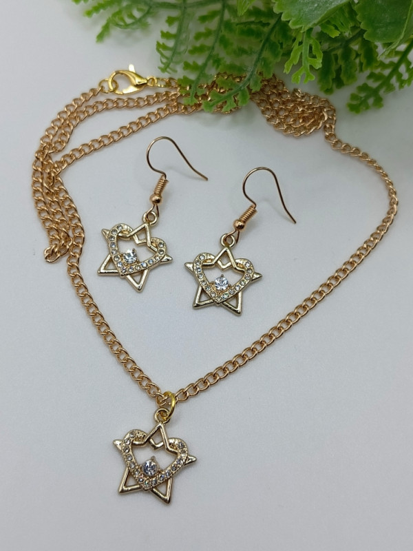 WW ЗЛ-23/30-СЦ Набор "Золотое сердце в звезде": Цепочка с кулоном + серьги. Цвет: золото