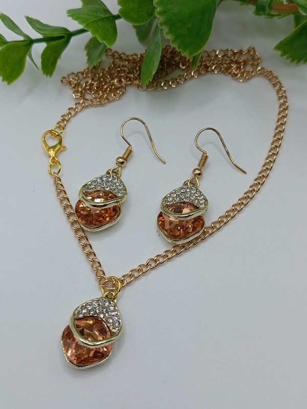 WW ЗЛ-23/32-СЦ Набор "Сердце со светло коричневым камнем": Цепочка с кулоном + серьги. Цвет: золото