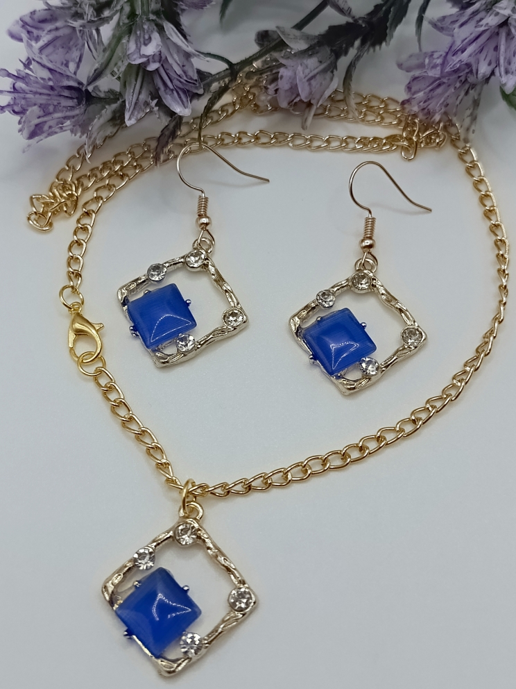 WW ЗЛ-25/15-СЦ Набор "Синий камень в ромбе": Цепочка с кулоном + серьги. Цвет: золото