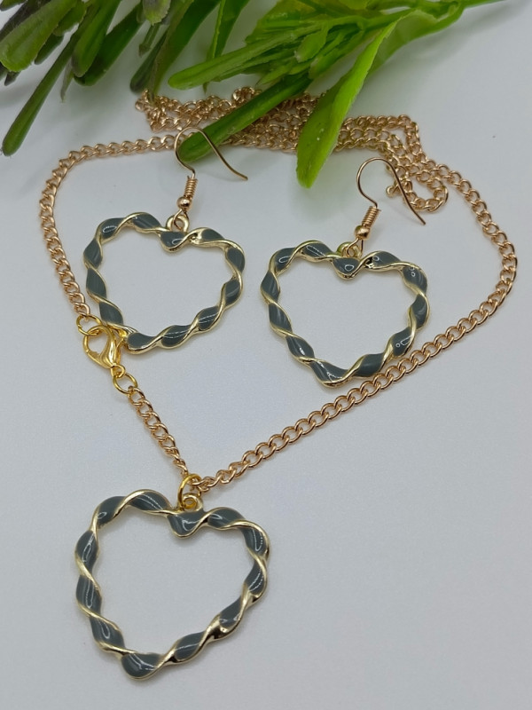 WW ЗЛ-25/19-СЦ Набор "Зеленое плетеное сердце": Цепочка с кулоном + серьги. Цвет: золото