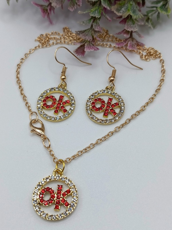 WW ЗЛ-25/21-СЦ Набор "ОКей в круге": Цепочка с кулоном + серьги. Цвет: золото