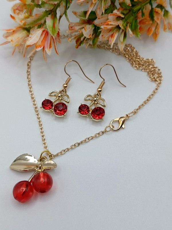 WW ЗЛ-25/22-СЦ Набор "Красные вишенки": Цепочка с кулоном + серьги. Цвет: золото
