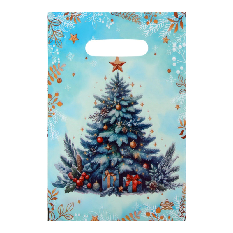 10636549 Пакет бирюзовый "Акварельная елка" Размер 20 х 30 см.